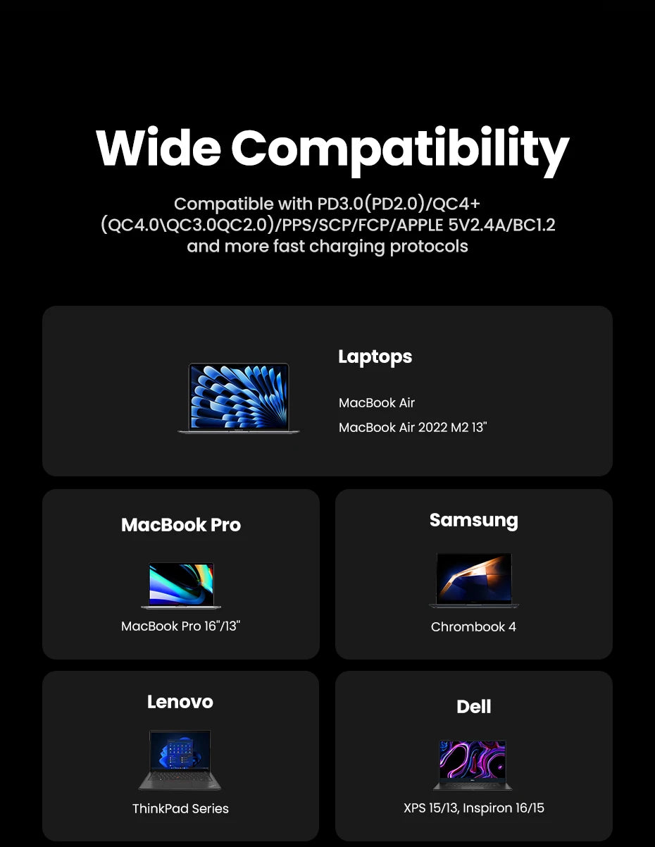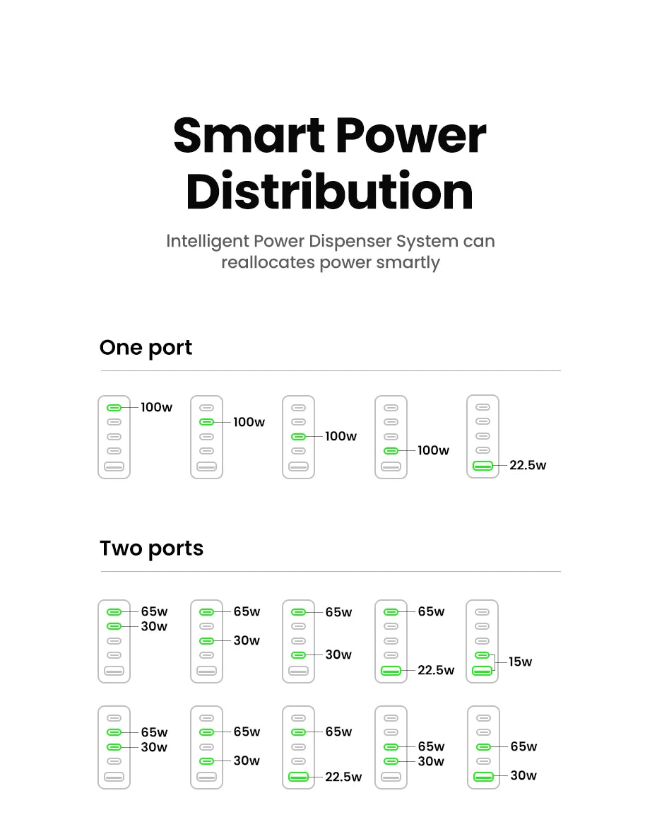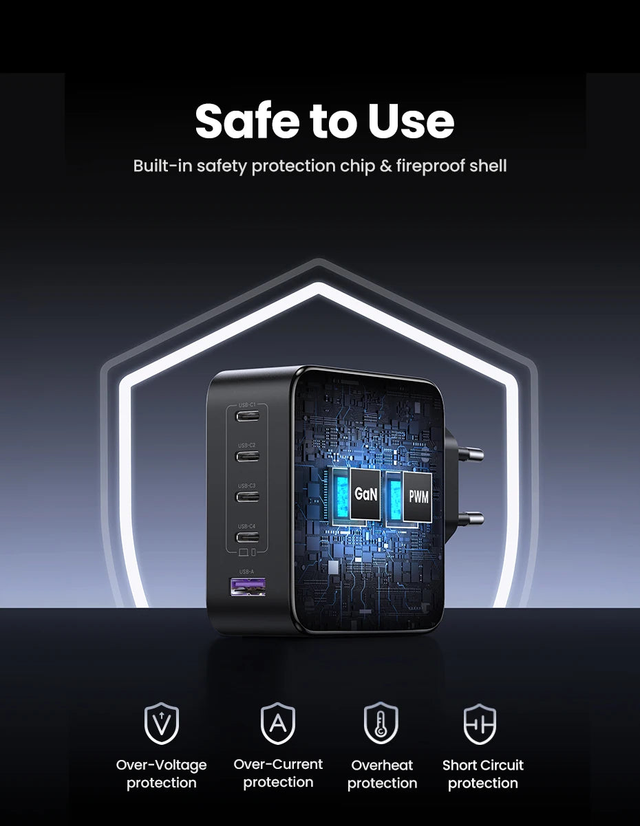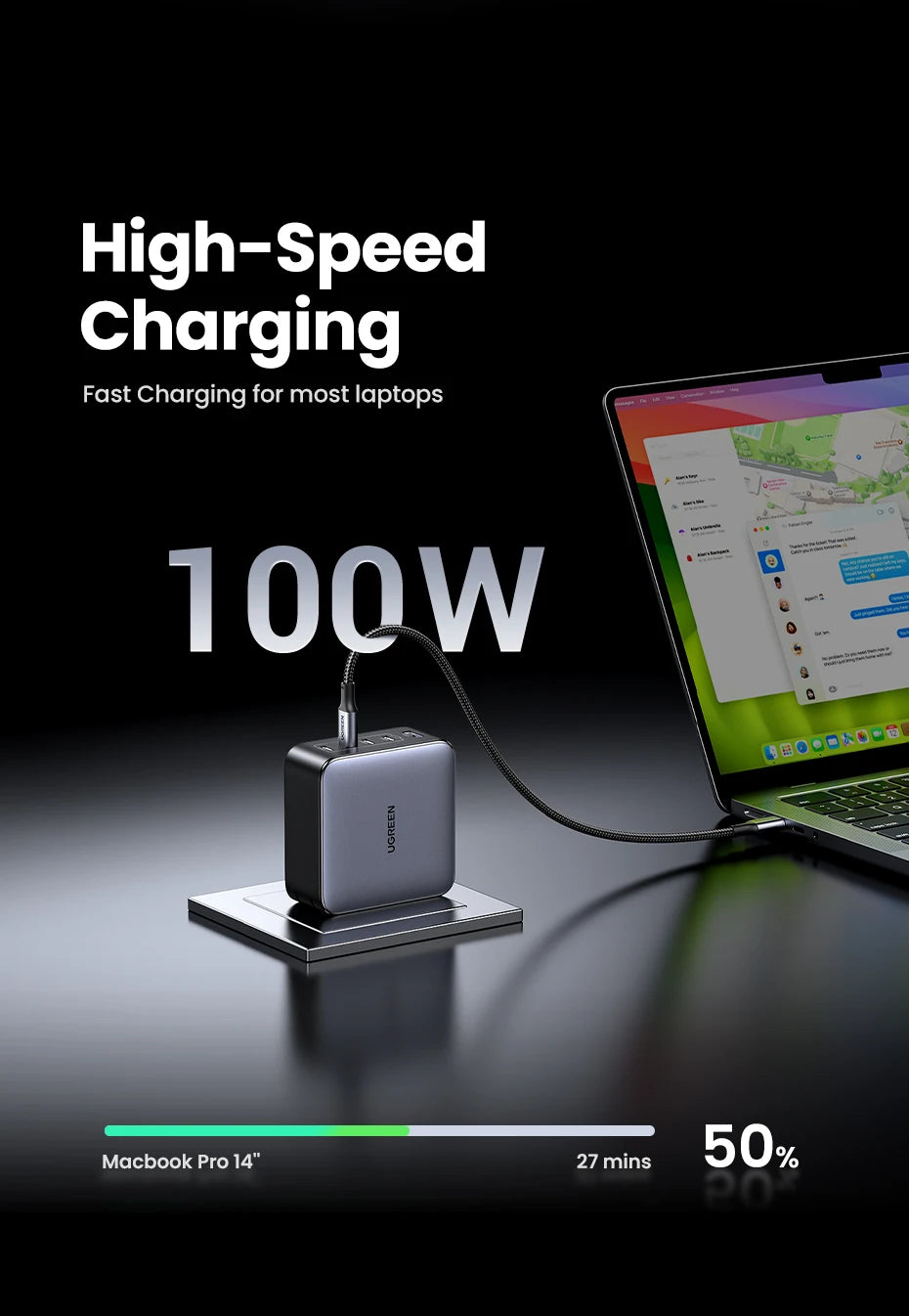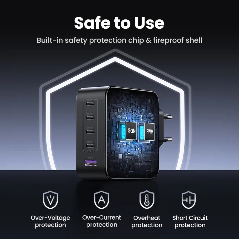 Chargeur GaN UGREEN 100W - 5 Ports USB-C - Charge Rapide PD QC4.0 pour MacBook, iPhone 17/16/15 Pro, Laptop, Tablette